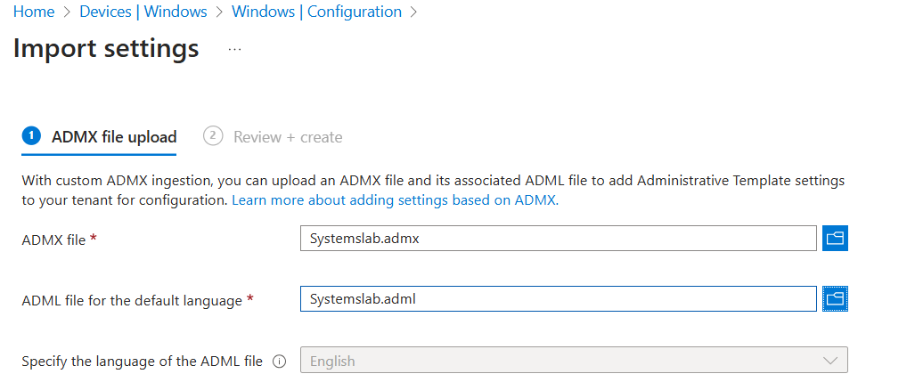 Click Import button and select the admx/Systemslab.admx and admx/en-US/Systemslab.adml file from the unzipped Group Policy Templates.