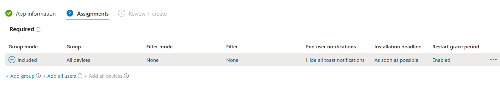 Select all devices to deploy to all Windows machines enrolled in Intune or add filter for limited rollout.