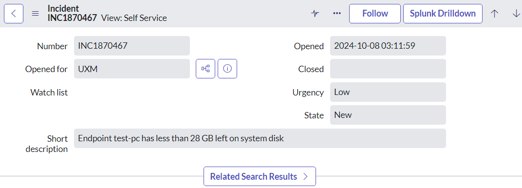 Once the threshold is breached, UXM can automatically send the event into ServiceNow ITOM / ITSM as an incident.
