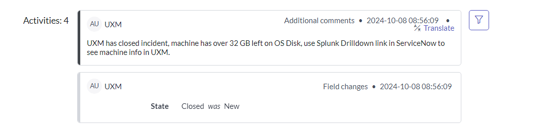Once UXM confirms the issue is resolved, it can send a resolution signal back to ServiceNow.
