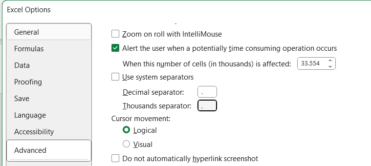 De-check "Use system separators" and set Decimal separator to "." and Thousands separator to ","