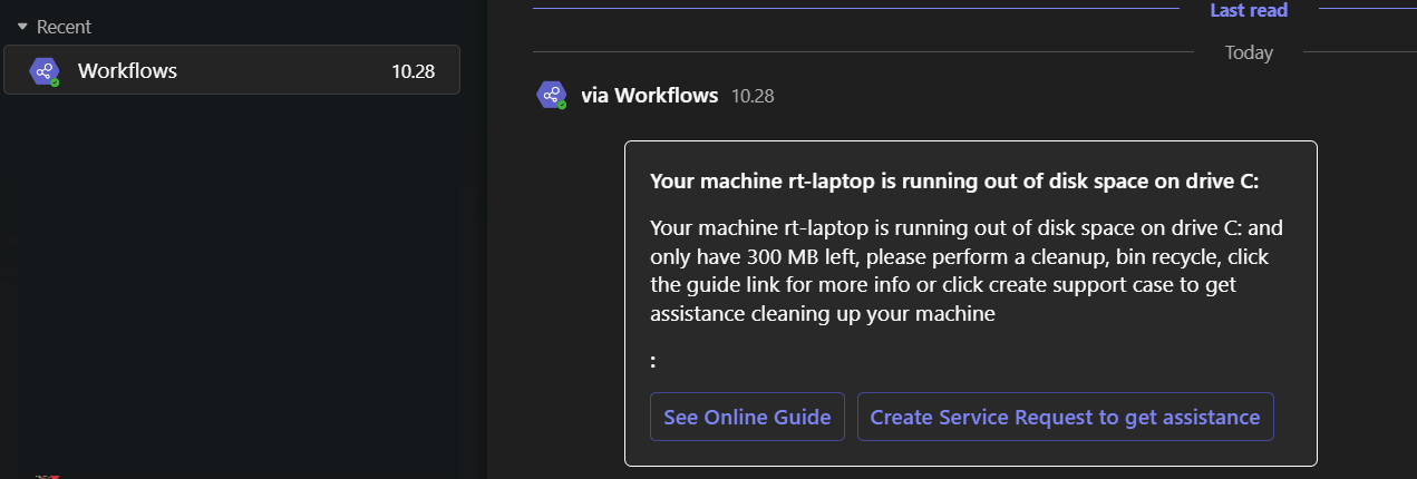 UXM can trigger PowerAutomate that sends Email or Teams message, the message can contain lnfo and links to Online guide or let the user create service request in support systems (ServiceNow, ZenDesk, Remedy, etc)